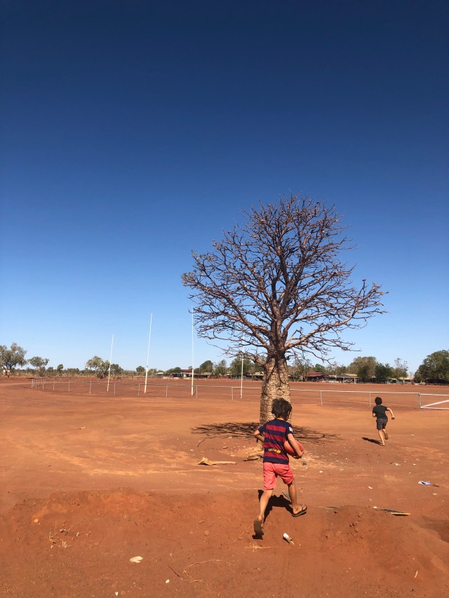 Eddie and Frank run across the field shrieking in joy as if running on for a grand final, and I walk after. The grass is soft and cool under my bare feet; the breeze ruffles across the field. The zephyrs pick up the boys voices, both of which mimic the tone of excited sports broadcaster as they individually commentate their actions. Currawongs softly gargle in the distance and the town creates a comforting hum as the sun dips.