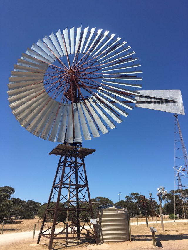 And so we come into Penong in the far west of South Australia. The map gives away little, just another dot near the end of the Nullarbor. However, as we approach, a sign tells us that Australia’s only windmill museum calls this little dot home, and we are instantly enthralled. This is the very type of civic innovation that we have come to admire, an indication of a town that hasn’t given up.